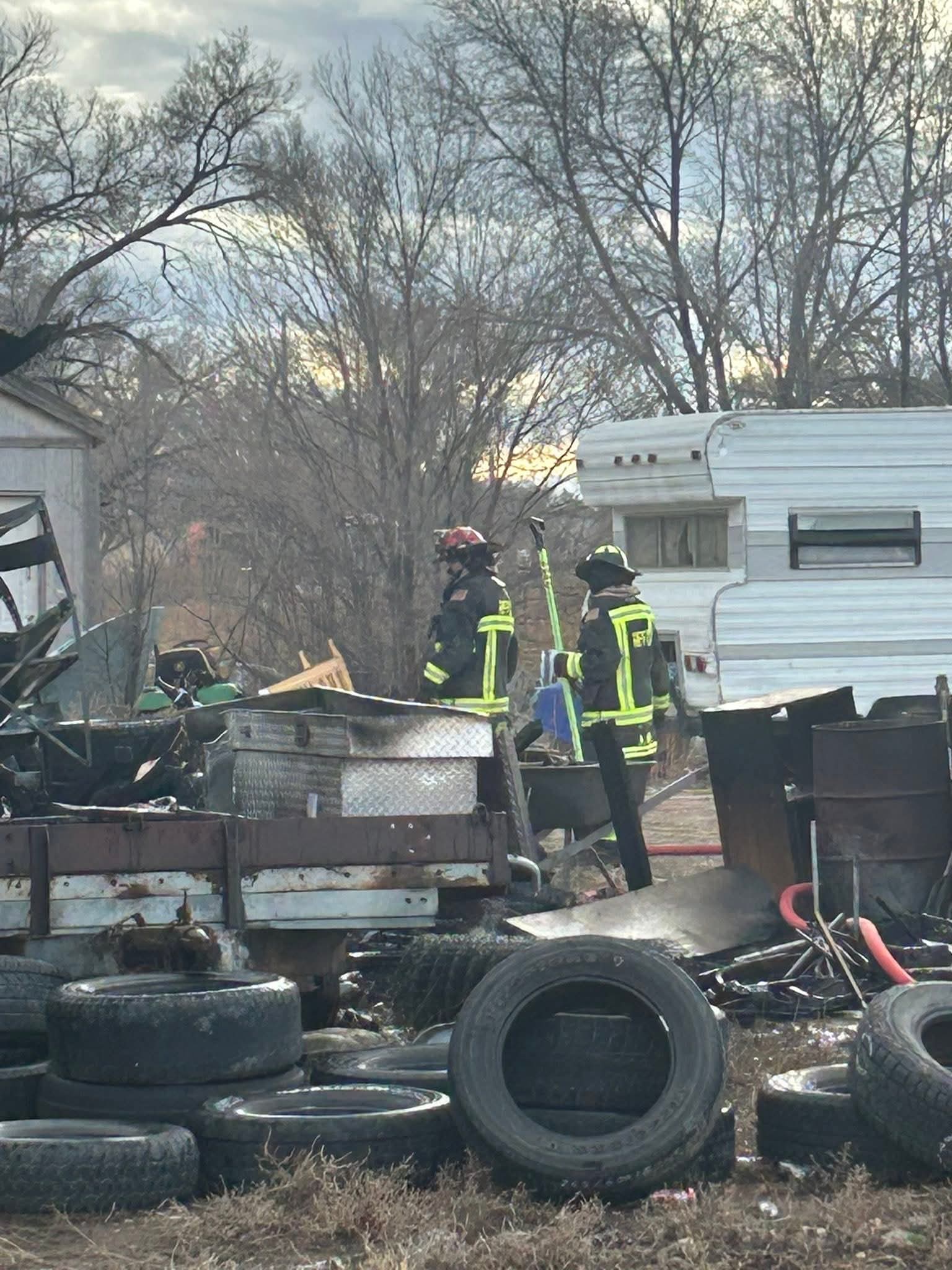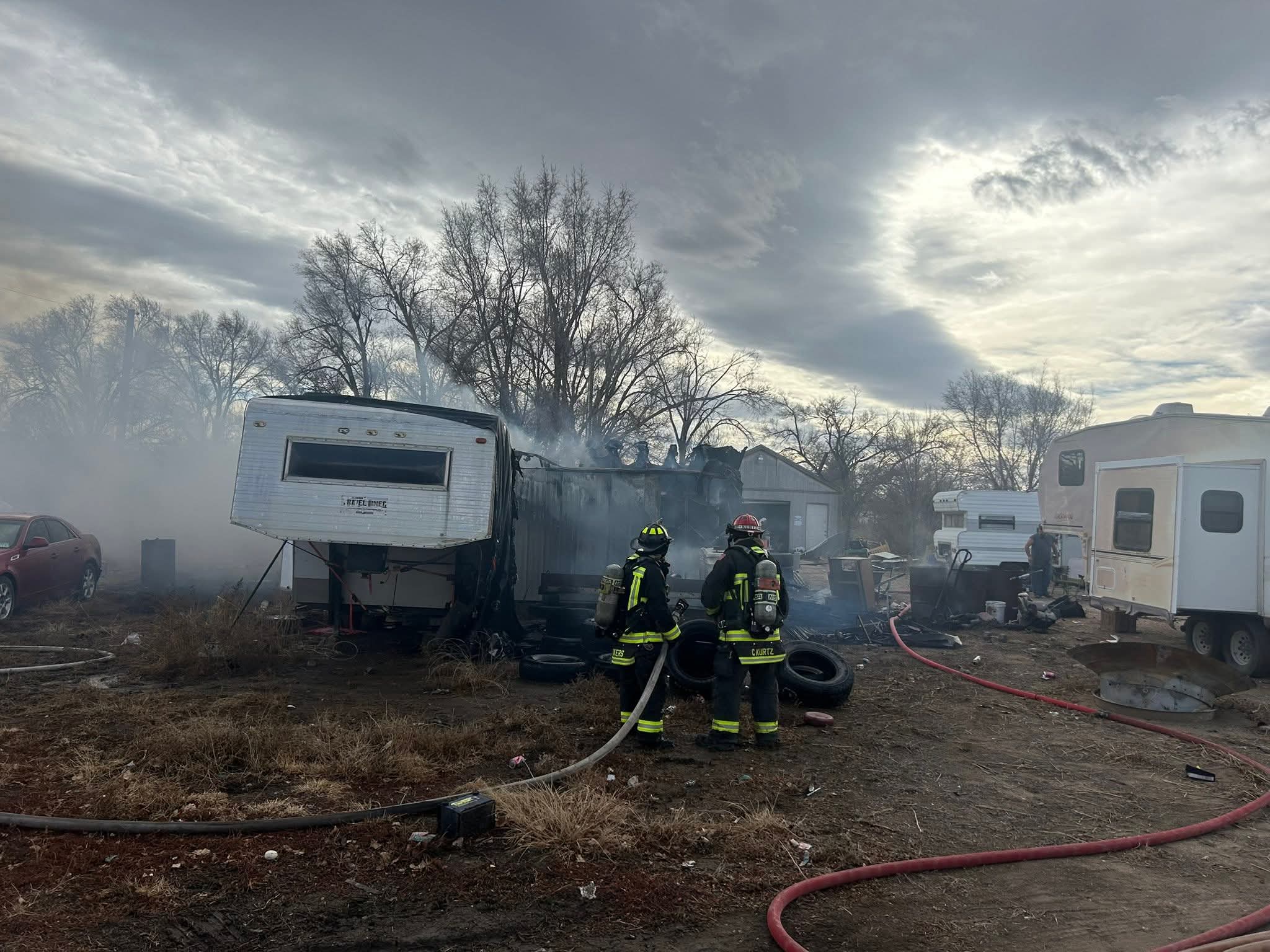 Today at approximately 12:50pm we were paged to a rural fire of an outbuilding in the area of CR 20.75 and CR FF.5. Upon arrival outbuilding(shed) was fully engulfed in flames. A fifth wheel camper that was unoccupied recieved fire exposure damage to the rear of the camper. Fire attack was rapid and aggressive by fire personnel extinguishing the fire quickly.