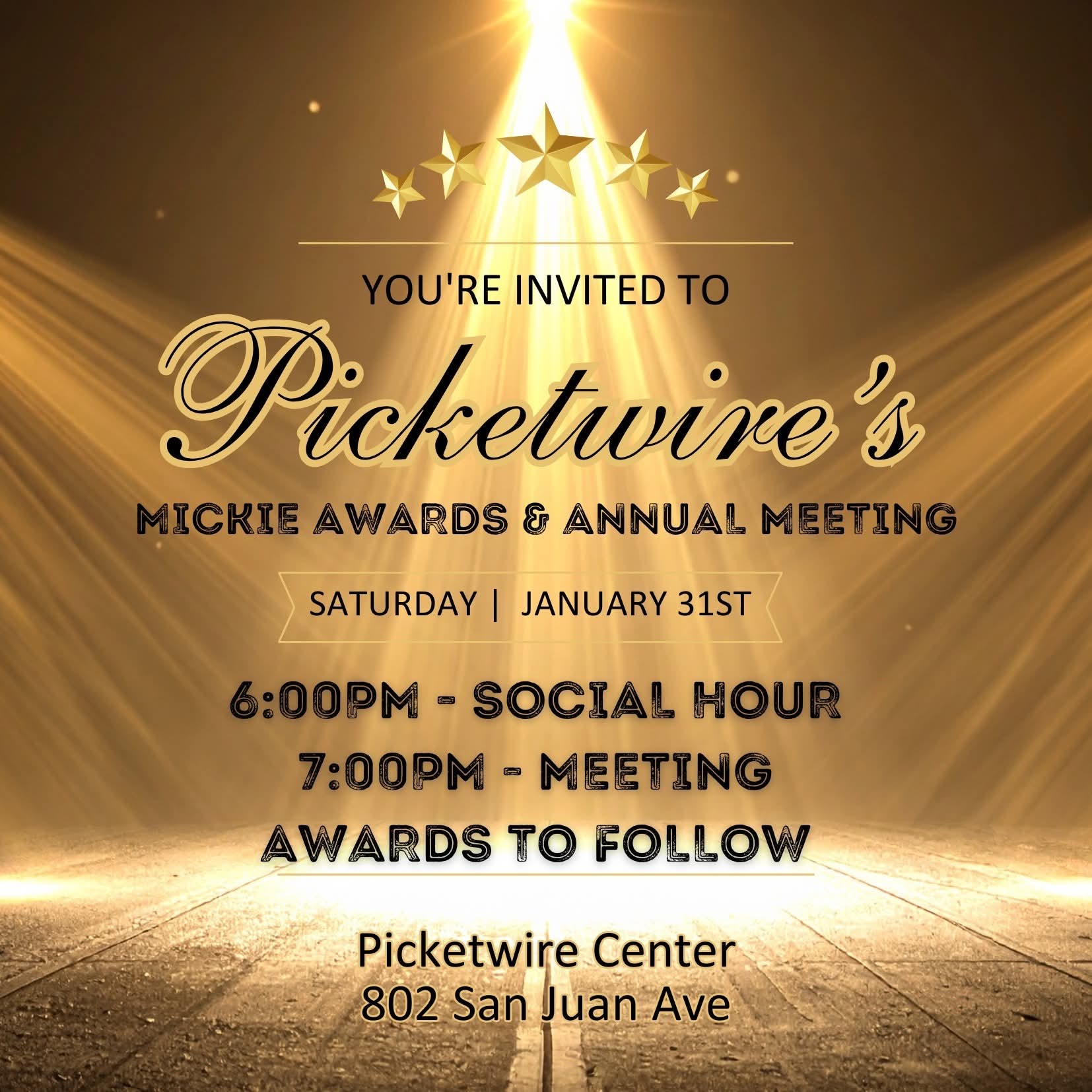Join us for a memorable evening of celebration and community at Picketwire's Mickie Awards & Annual Meeting!