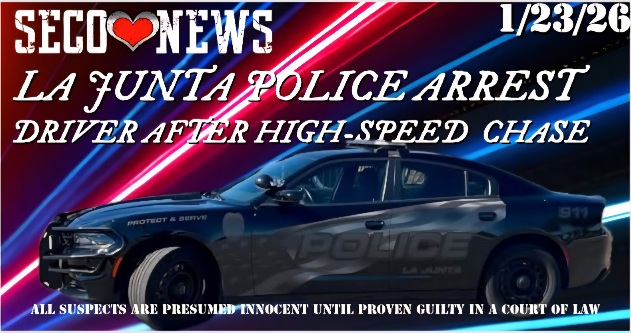 Description: A La Junta police traffic stop escalated into a high-speed eluding incident on January 23, 2026, ending in a crash and multiple charges including felony eluding and reckless driving. Read the Full Statement from the La Junta Police Department...