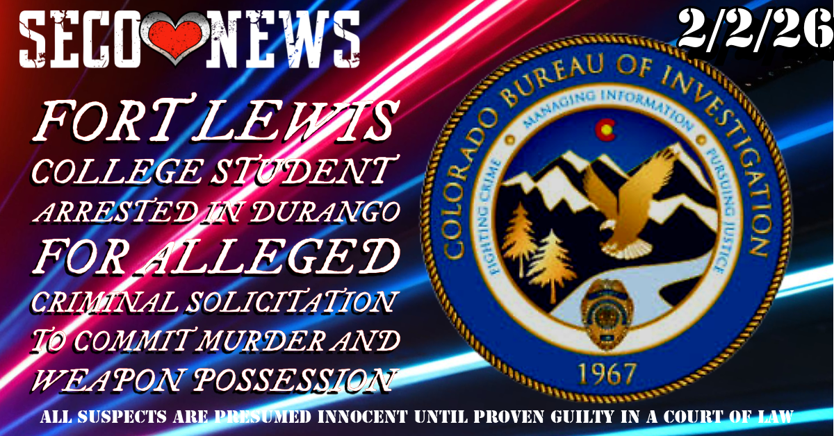 February 2, 2026 – CBI – Durango, CO – The Fort Lewis College Police Department (FLCPD), in conjunction with the Colorado Bureau of Investigation (CBI), has arrested a 19-year-old Fort Lewis College student following an investigation into allegations of a plot to commit murder.