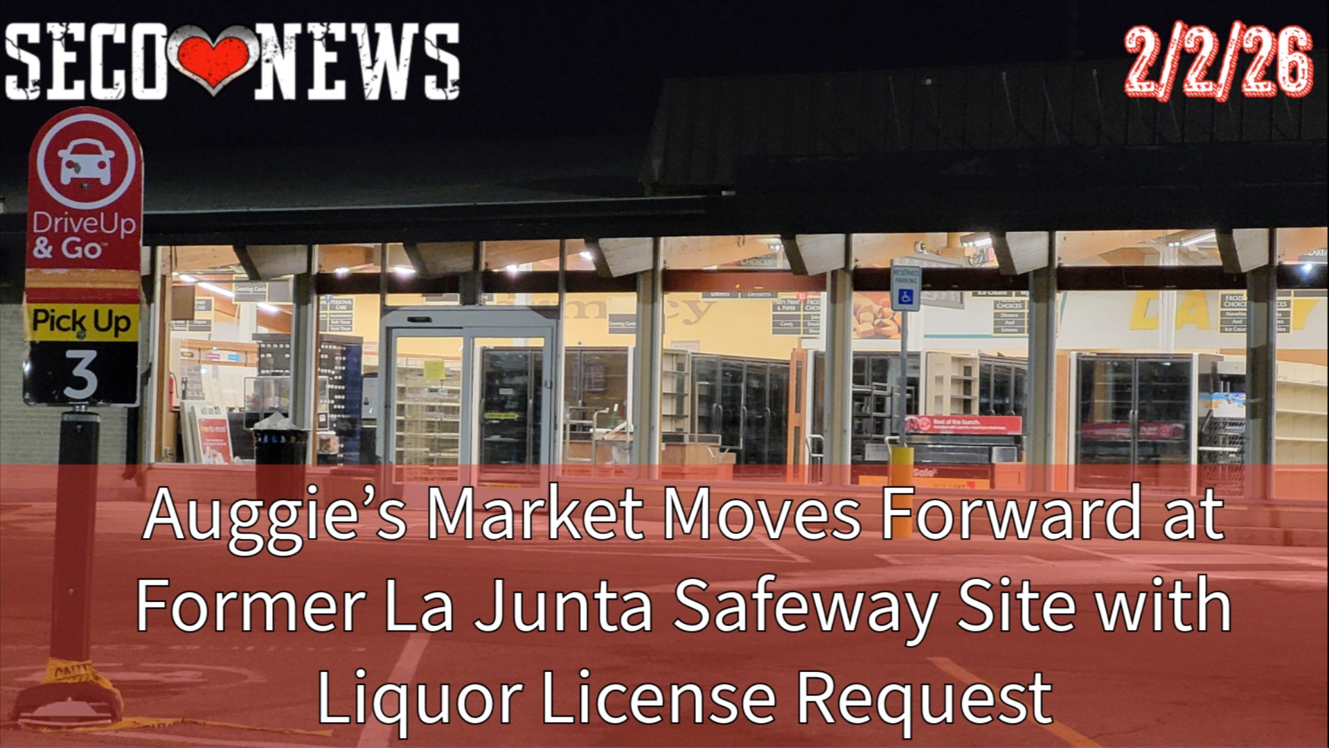 On Monday, February 2, 2026 the La Junta City Council unanimously approved a fermented malt beverage and wine liquor license application by The Colorado Harvest Markets Inc. doing business as Auggie's Market at 315 W. 2nd Street, which is the former location of the La Junta Safeway.