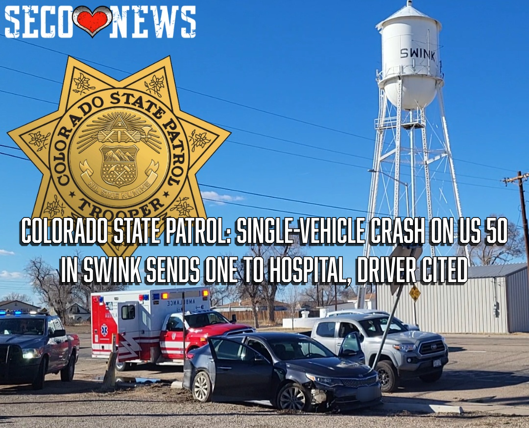 Description: A single-vehicle crash on US Highway 50 at milepost 374 in Swink, Colorado on Feb. 14, 2026 sent one person to the hospital. The Colorado State Patrol reports a 2018 Kia Optima struck a signpost and the driver was cited for no proof of insurance. Read the Report from the Colorado State Patrol...