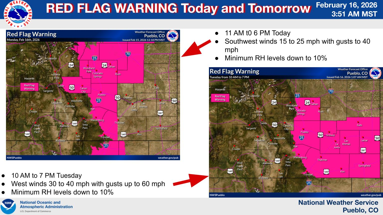 Southeast Colorado 7 Day Forecast Feb 16-22nd 2026