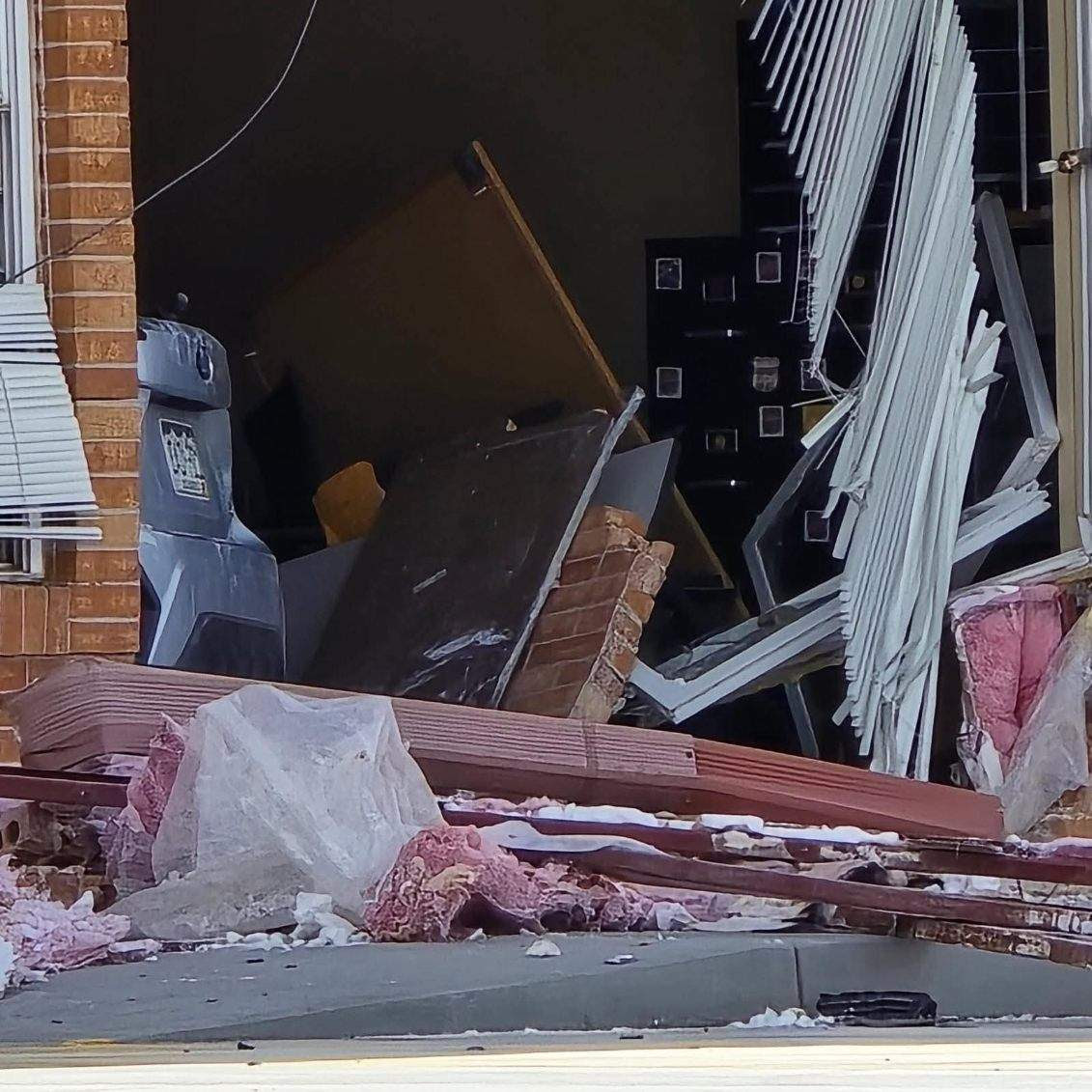 The brick building suffered extensive damage, leaving a car size hole.