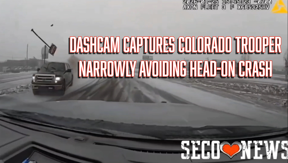 On January 25, 2026, at 3:45 p.m, a near miss on Highway 85 in Adams County was captured on a cruiser dashcam video. A Colorado State Trooper narrowly avoided a head-on collision when a Ford pickup truck lost control on a lightly snow-dusted roadway. The pickup was traveling too fast for the conditions, slid through the median, struck a traffic sign, and entered oncoming traffic before continuing through the intersection.