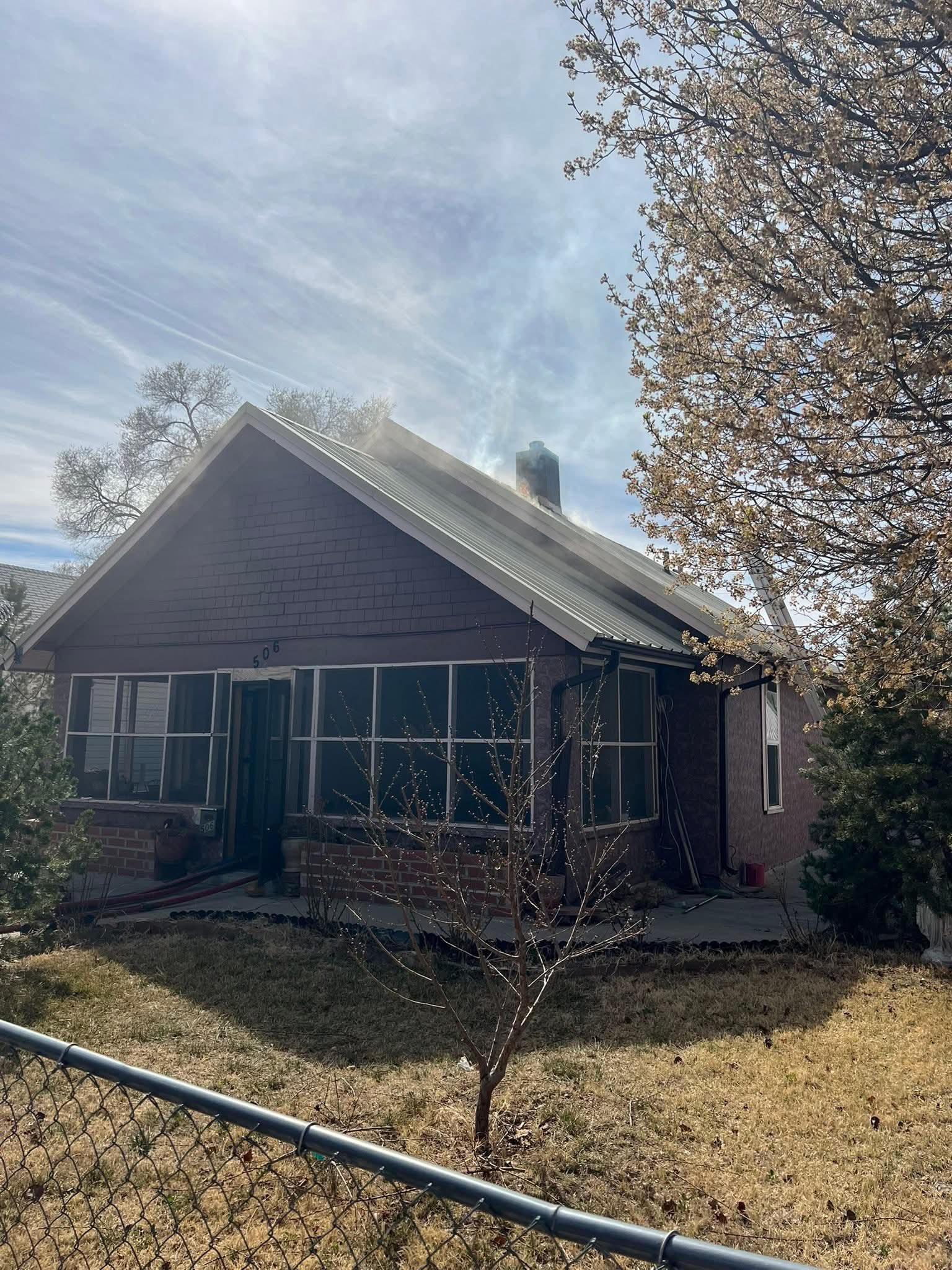 Today at approx 2:33pm, we responded to a reported structure fire at 506 Lawrence in La Junta. Upon arrival moderate smoke was seen coming from the peak of the roof and from the eves of the house.