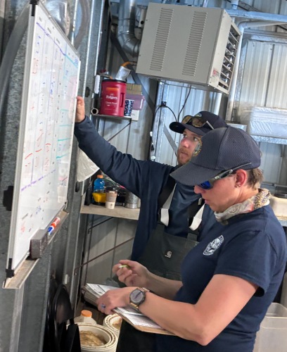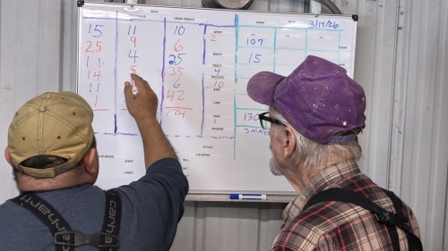 Volunteers review the walleye spawning count. Each day’s effort contributes to the Colorado Parks and Wildlife goal to collect and fertilize 127 million eggs.