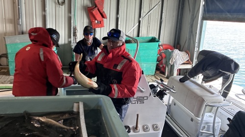Volunteers play a crucial role in the process, pulling nets, sorting fish, helping staff untangle, repair, and prepare the nets each day so they can be reset for the next round of fish collection. “Volunteers are phenomenal, and we truly couldn’t do this project without their help."