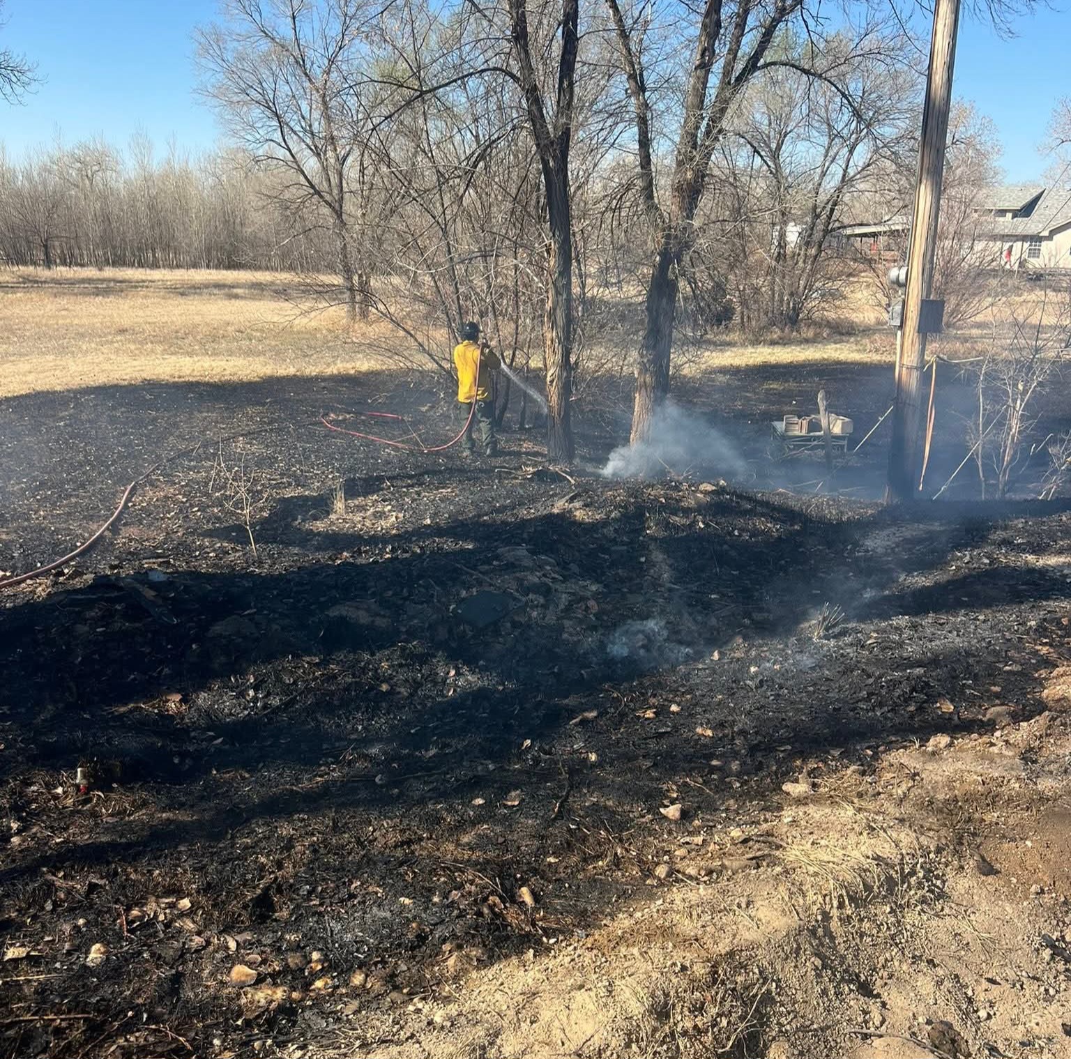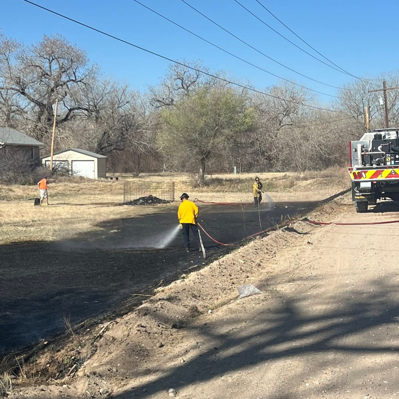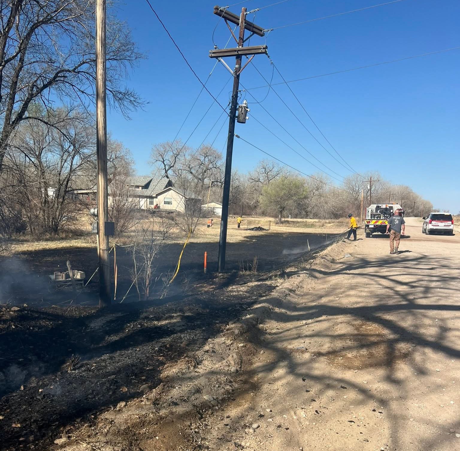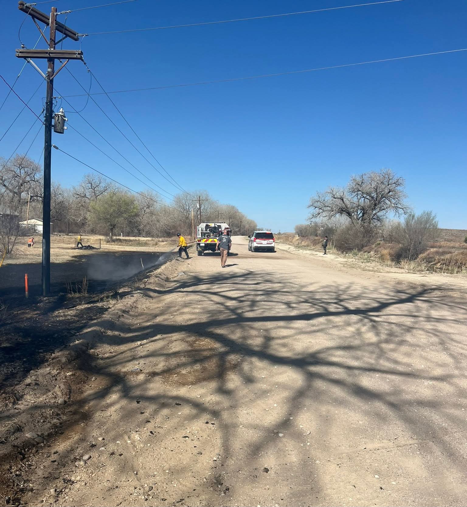 Description: The La Junta Fire Dept. responded to a brush fire on Rd 809 at 9:34 a.m. on March 29, 2026, stopping flames from reaching a canal and power pole. The fire was caused by a burning trash pile and was quickly contained.