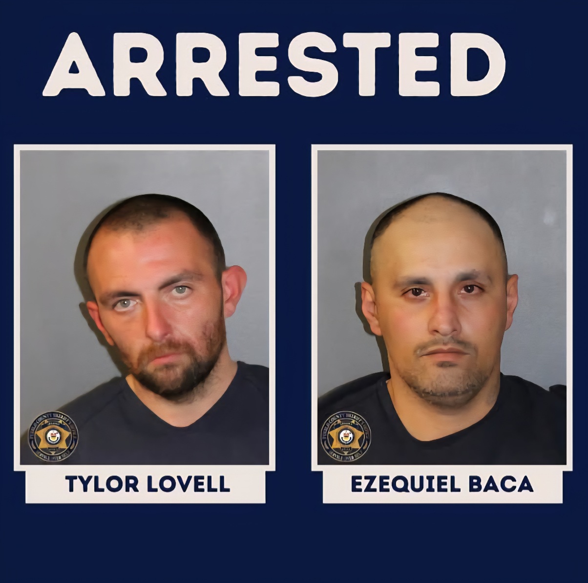 Deputies saw two men starting to walk out of the building but quickly retreated inside. Deputies issued several verbal commands for the men, later identified as Tylor Lovell, 31, and Ezequiel Baca, 35, to exit the building. Lovell and Baca complied and were taken into custody without incident.