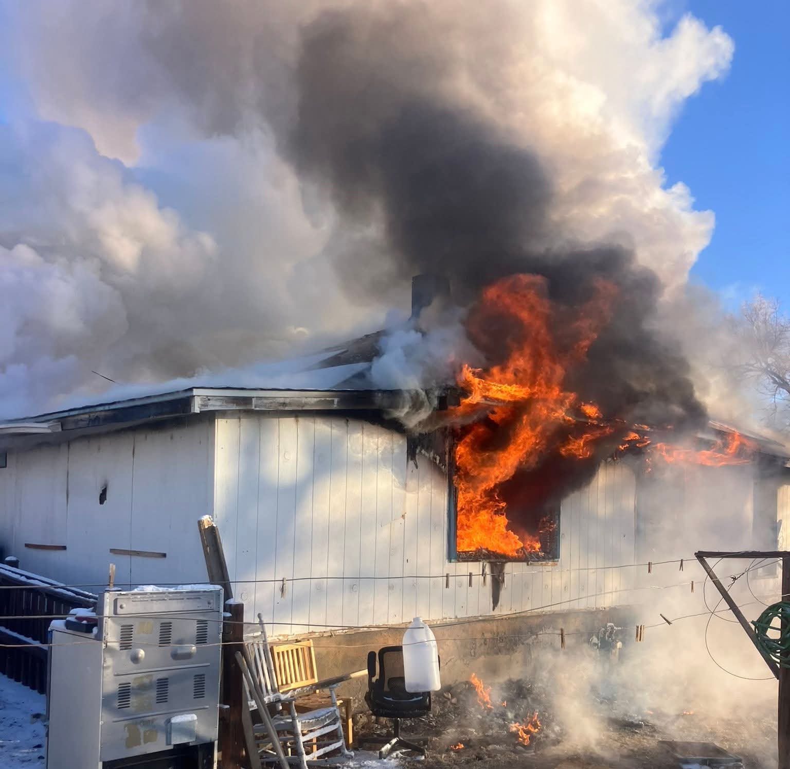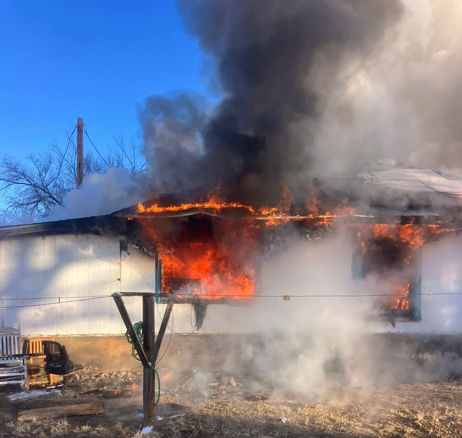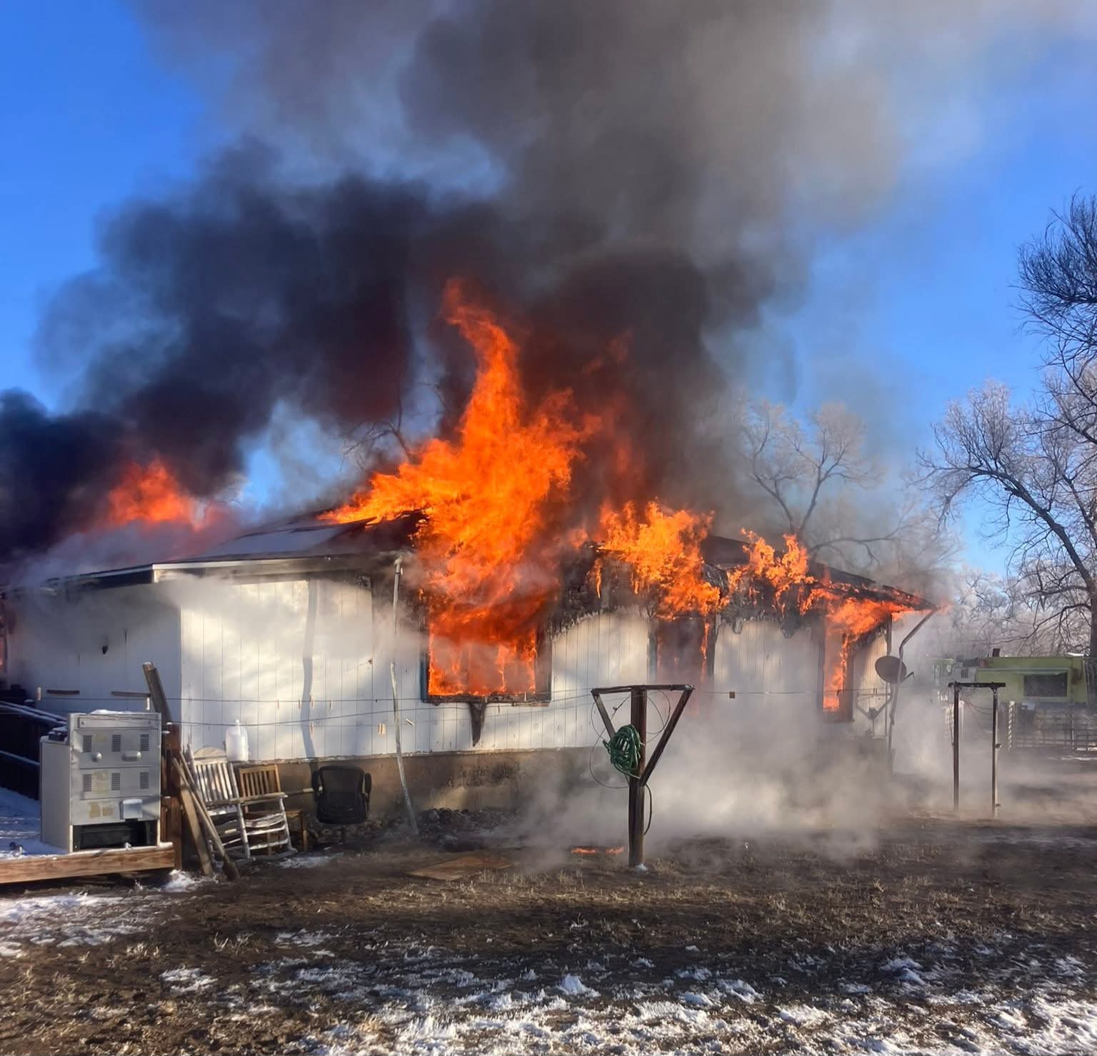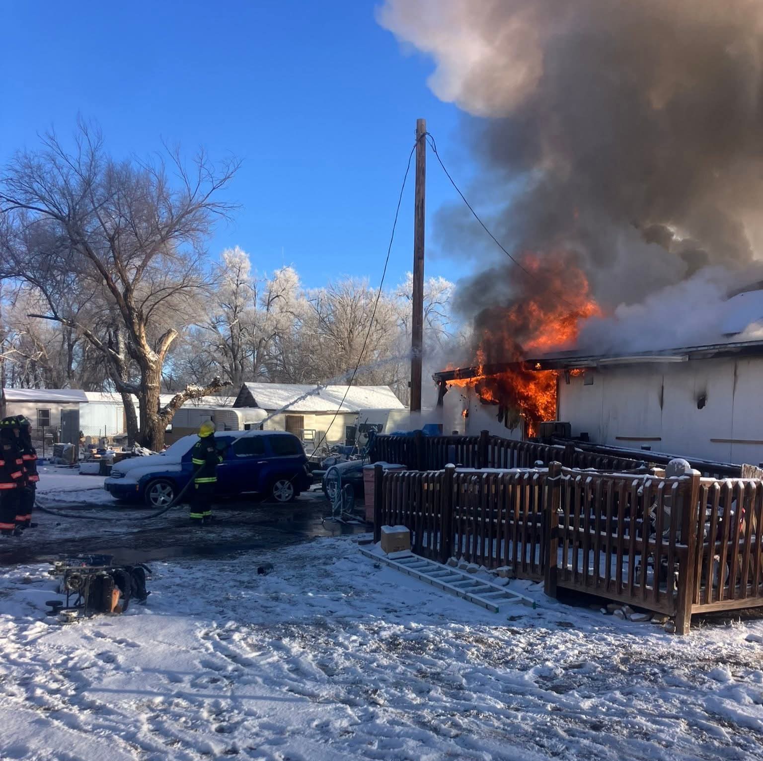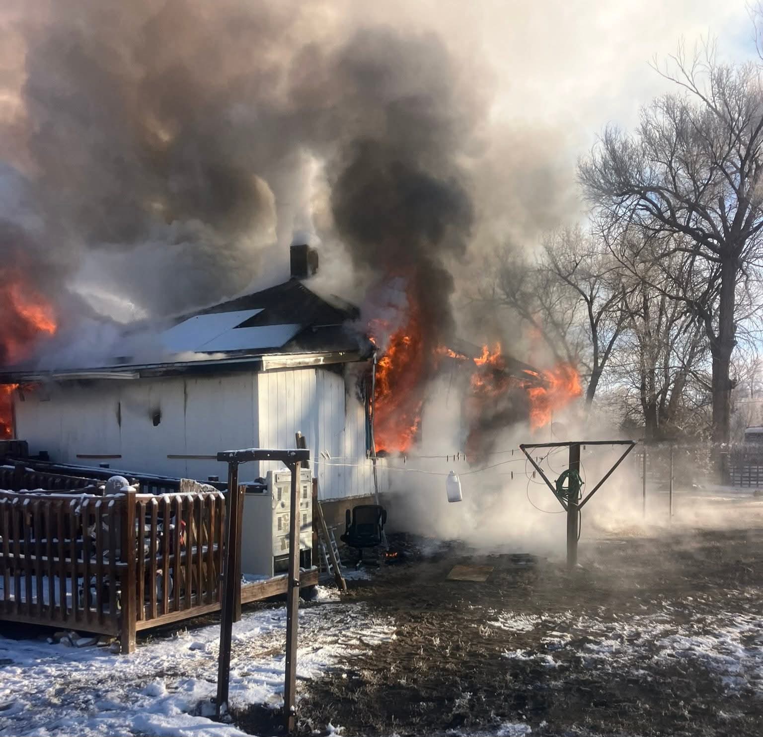Description: Fire crews provided mutual aid for a Crowley County structure fire around 6:30 a.m., assisting with containment and exposure control despite zero-degree temperatures... photos and statement provided by Rocky Ford Fire Department...