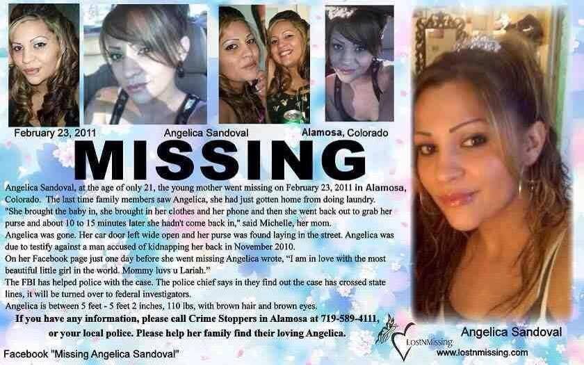 Angelica Sandoval, at the age of only 21, the young mother went missing on February 23, 2011 in Alamosa, Colorado. The last time family members saw Angelica, she had just gotten home from doing laundry. "She brought the baby in, she brought in her clothes and her phone and then she went back out to grab her purse and about 10 to 15 minutes later she hadn't come back in," said Michelle, her mom.