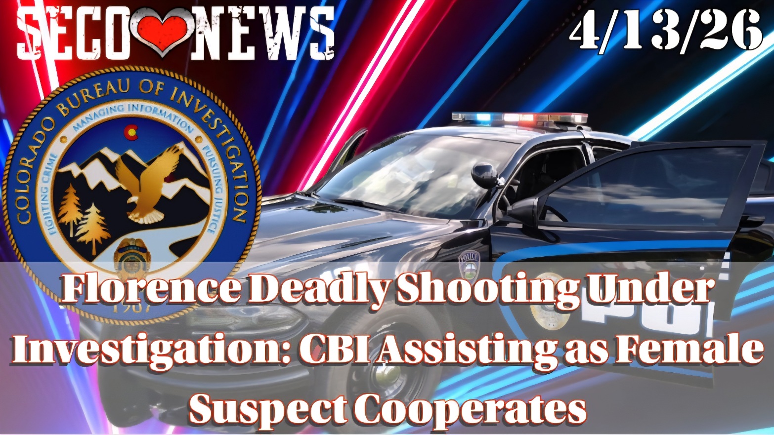 Description: A 40-year-old man was killed in a shooting in Florence, Colorado on April 11, 2026. The Colorado Bureau of Investigation is assisting local police as a 43-year-old female suspect cooperates and the investigation remains ongoing... Read the Full Press Release from the Colorado Bureau of Investigation...