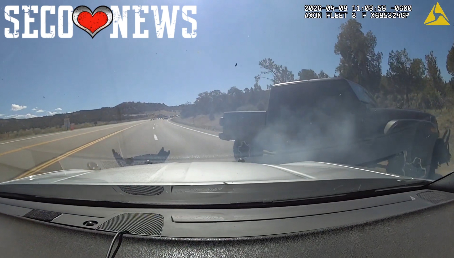 (Montezuma County, CO) - On April 8, 2026, at approximately 10:59 a.m., Colorado State Patrol Trooper Maniss was conducting a traffic stop on Highway 160, milepost 42 near Cortez, when he observed a gray Jeep Gladiator traveling on the shoulder and driving the wrong way into the opposing lane of traffic. Motorists nearby began pointing toward the vehicle, drawing immediate attention to the danger.